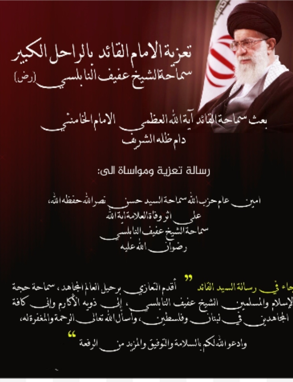 الحاج عفيف تلقى اتصالات تعزية، من الرؤساء لحود وبري وميقاتي، والسيد نصرالله والسيد مقتدى الصدر
