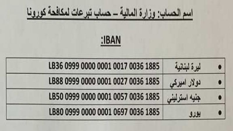 وزارة المال في لبنان تنشئ حسابات تبرع لمكافحة كورونا